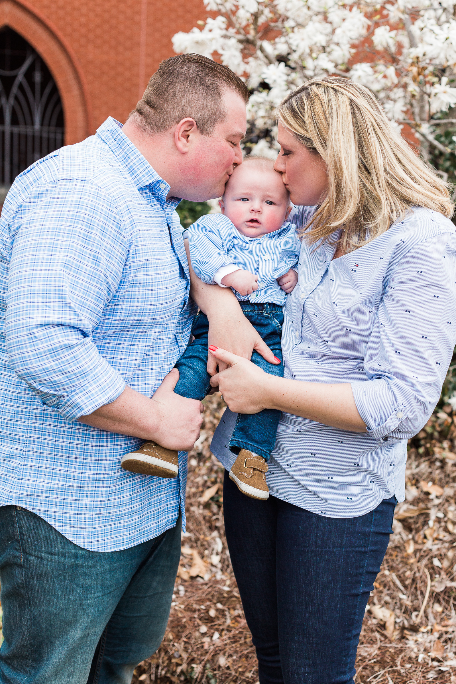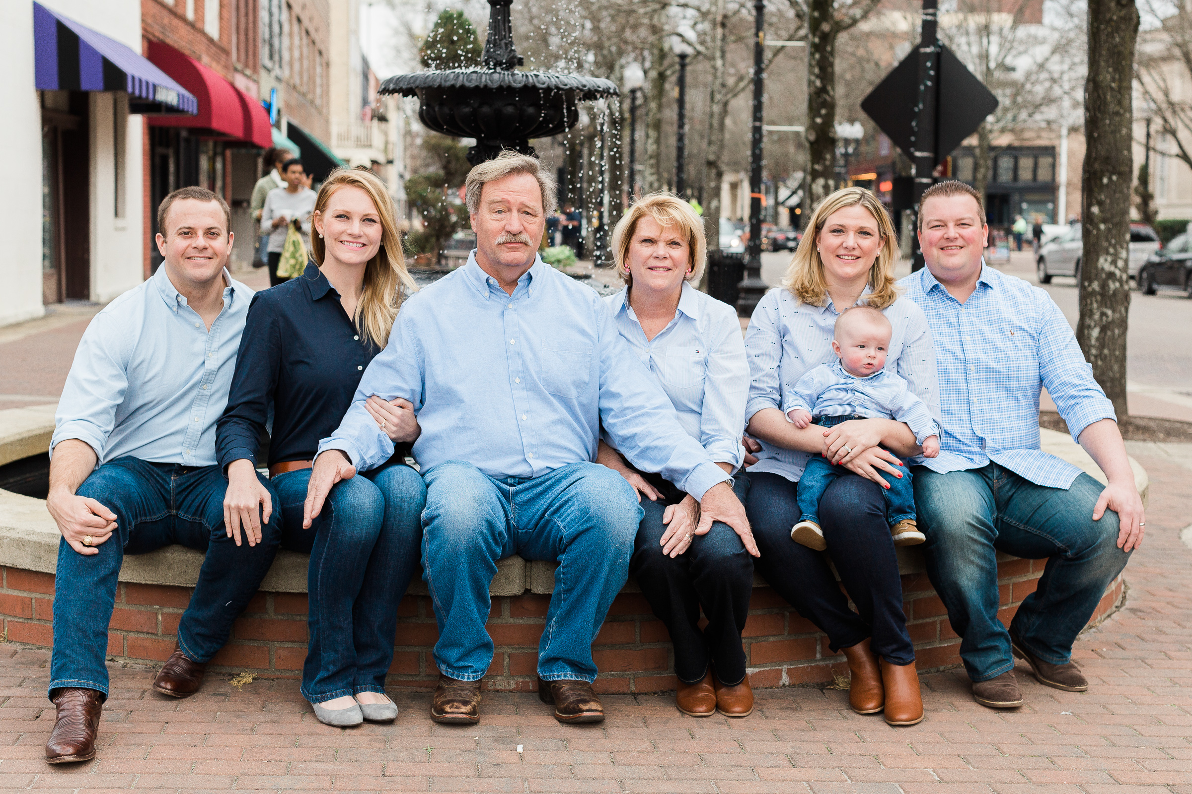 When Sarah messaged me a few weeks ago and asked about doing a surprise family session with her sister’s new baby and her parents, I was super excited because I love surprises! But then she told me it would be a surprise because she was still deployed in Iraq and would be coming home a few days before the session, I knew I HAD to make the drive to Fayetteville for such a special occasion! Sarah said her whole family was coming down to North Carolina for her return home and since her sister recently had her first baby, she wanted some nice photos of her family with the newest addition! I had so much fun roaming around downtown Fayetteville with this beautiful family last weekend and capturing so many sweet moments. Enjoy!